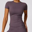 NCLAGEN Women Running Sports T Shirt Summer Short Sleeve Round Neck Breathable Stretchy GYM Yoga Slim Fitness Active Top Tee