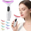 1. This neck face lifting massager features 7-color LED technology (Red Light: Stimulates collagen production. Orange Light: Relaxes skin & accelerates cell growth/healing. Green Light: Soothes and calms irritation. Yellow Light: Provides neutral lighting. Cyan Light: Reduces muscle twitching and capillary swelling. Blue Light: Improves microcirculation. Violet Light: Enhances lymphatic drainage.) to target different skin concerns for a more radiant and rejuvenated appearance.
