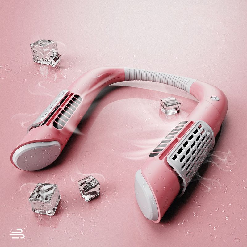 Neck Fan Mini Bladeless Fan USB Rechargeable Fan Mute Sports Fans for Home Outdoor Portable Hanging Fans Air Conditioner Cooler Pink
