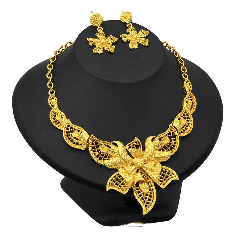 Necklace Earrings Women Wedding Jewelry Two Piece Set Yellow30