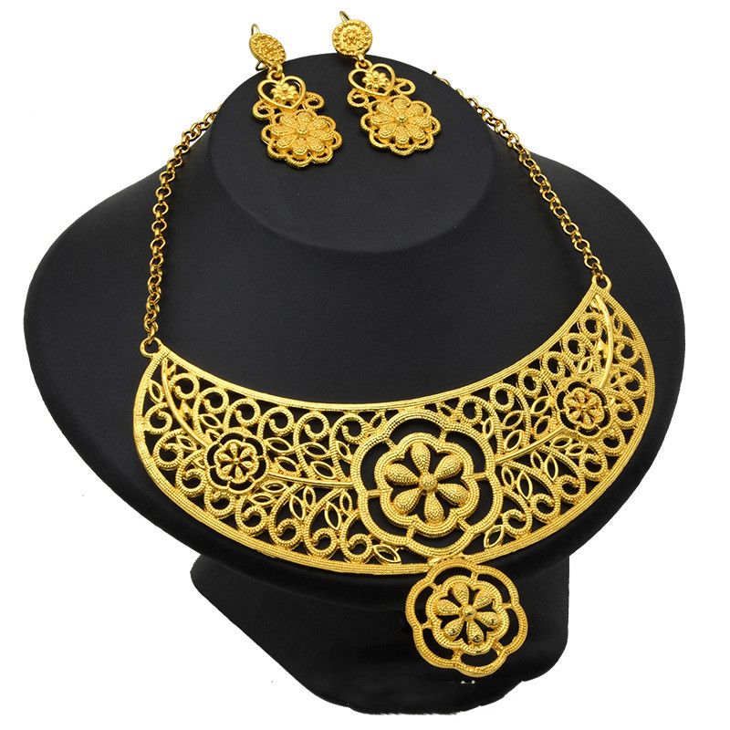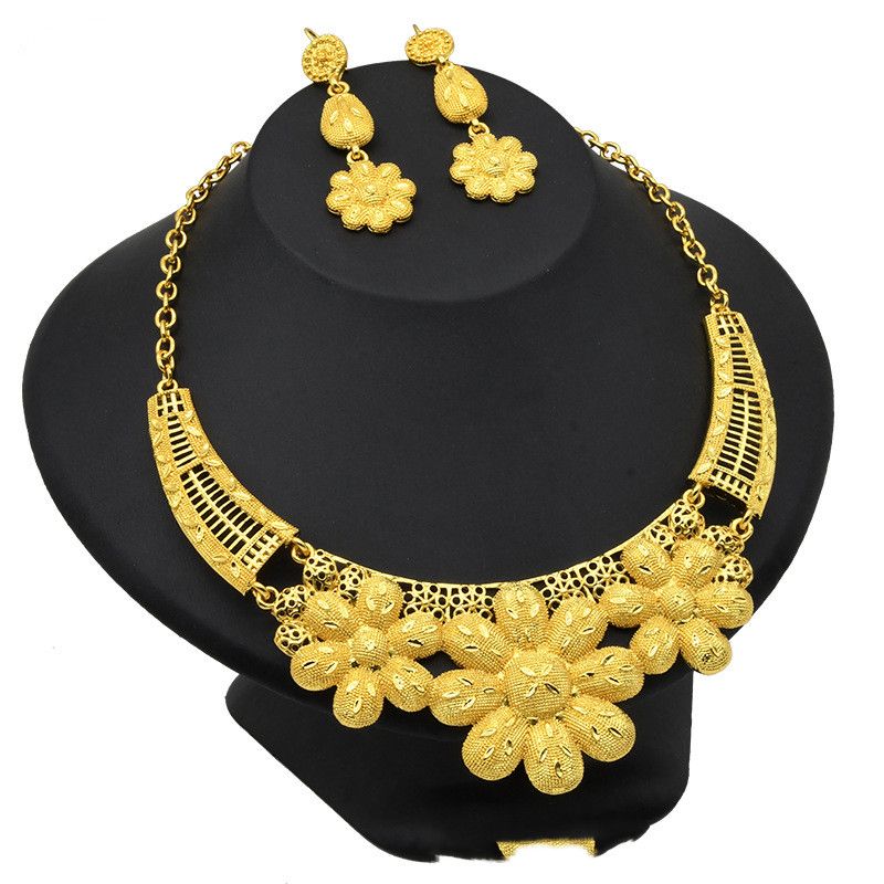 Necklace Earrings Women Wedding Jewelry Two Piece Set Yellow35