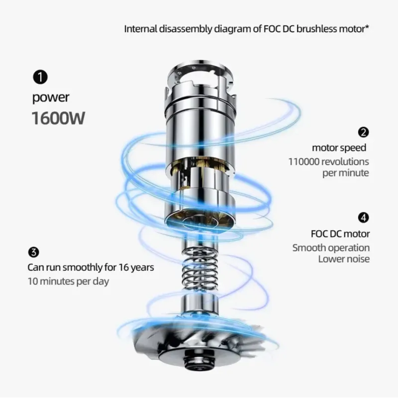 110000 revolutions per minute "1 high-speed brushless motor Paired with13 large angle fan blades,cutting wind flow Quickly generate strong airflow