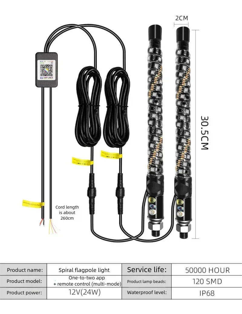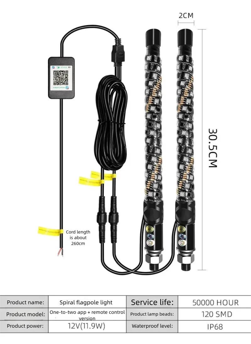 NEHANLYN 11.81 Inch Long 1FT COB LED Whip Lights Turn Signal Brake Reverse for Polaris RZR Can-Am Maverick X3 UTV ATV Offroad