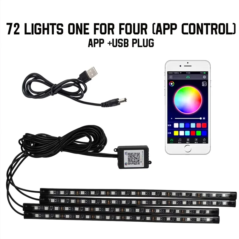 Neon 48 72 LED Car Interior Ambient Foot Light with USB Wireless Remote Music App Control Auto RGB Atmosphere Decorative Lamps