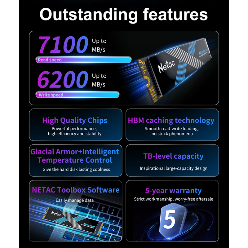 Netac SSD 1TB 2TB 4TB M.2 2280 Hard Drive PCIe4.0X4 M2 NVMe 7100MB/s Internal Solid State Hard Drive SSD Disk for PS5 Laptop PC