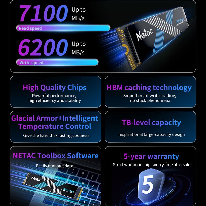 Netac SSD NVMe M2 SSD 1TB 2TB 4TB M2 SSD PCIe 4.0x4 M.2 2280 Hard Disk Solid State Drive for Laptop PS5 Desktop