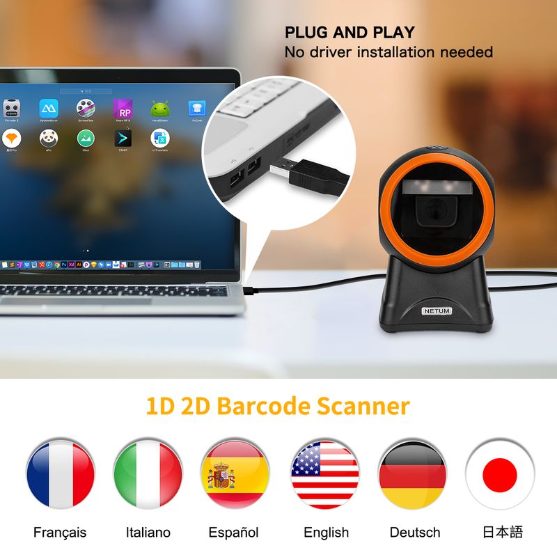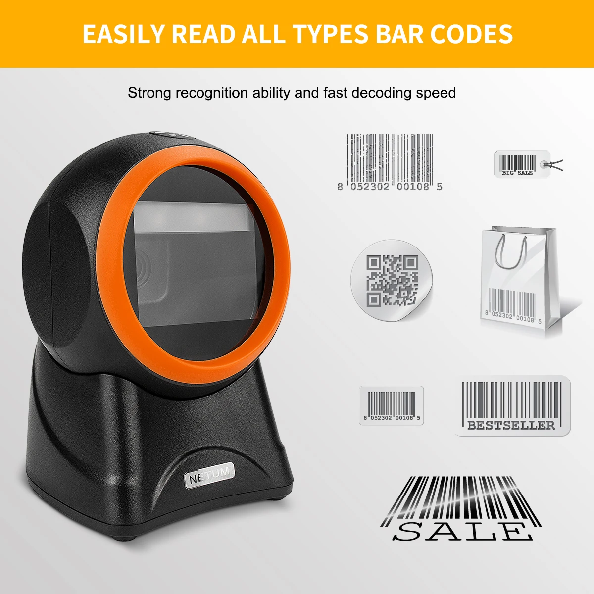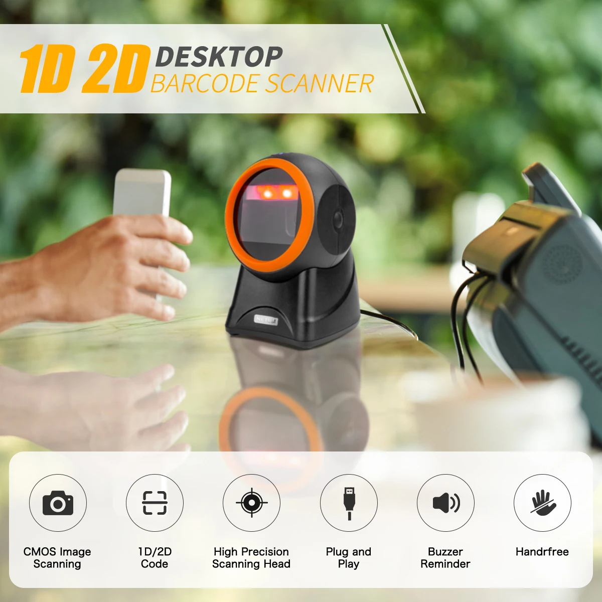 NT-2055 Desktop 1D QR/2D Barcode Scanner Omnidirectional Hands-Free Barcode Reader Automatic Sensing Scanning Platform Scanne