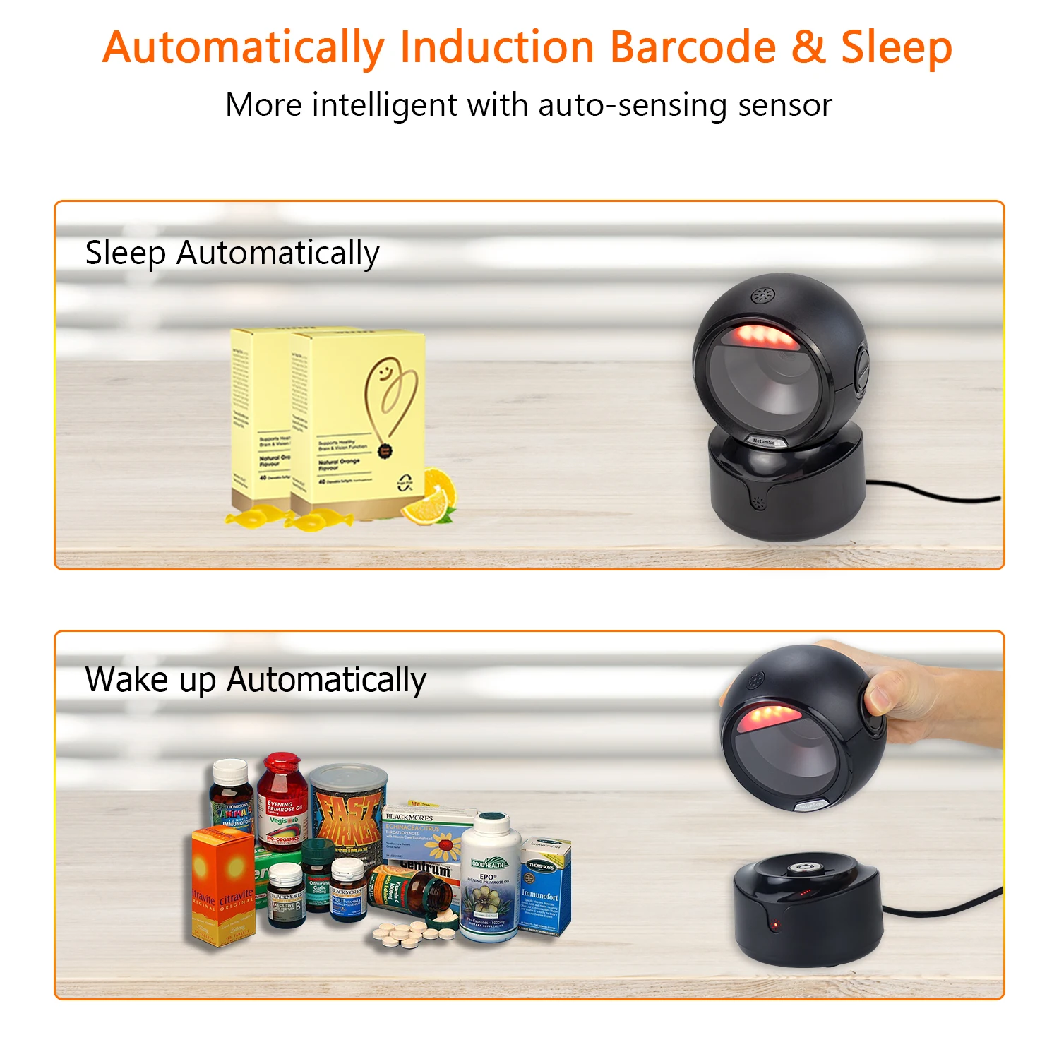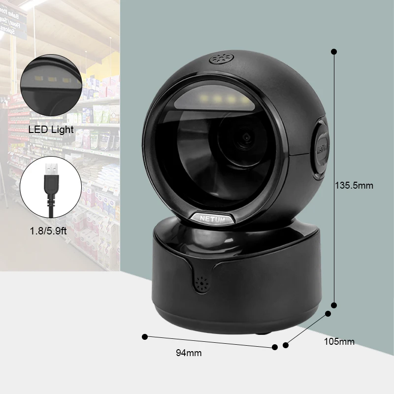 NETUM NT-A5 2D Desktop Barcode Scanner, Omnidirectional Hands-Free Wired USB Big Barcode Reader 1D QR Screen Barcodes Scanning