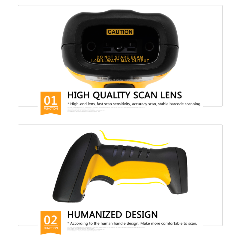 ćIndustrial Waterproof, Shock & Dust ProofćDust-proof, Splash-proof and Waterproof performance have reached IP67 level, With its rugged design and durable silicone plastic material, the NETUM NT-1200 is less likely to become damaged due to accidental drops from up to 12 ft./3.65 m. This barcode scanner with integrated housing which protect it from heavy dust, can handle mostly harsh working conditions.