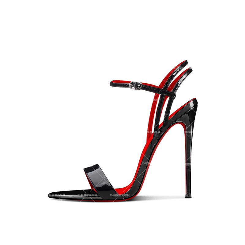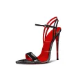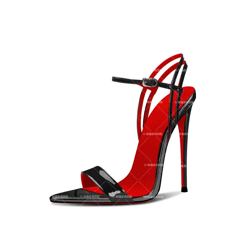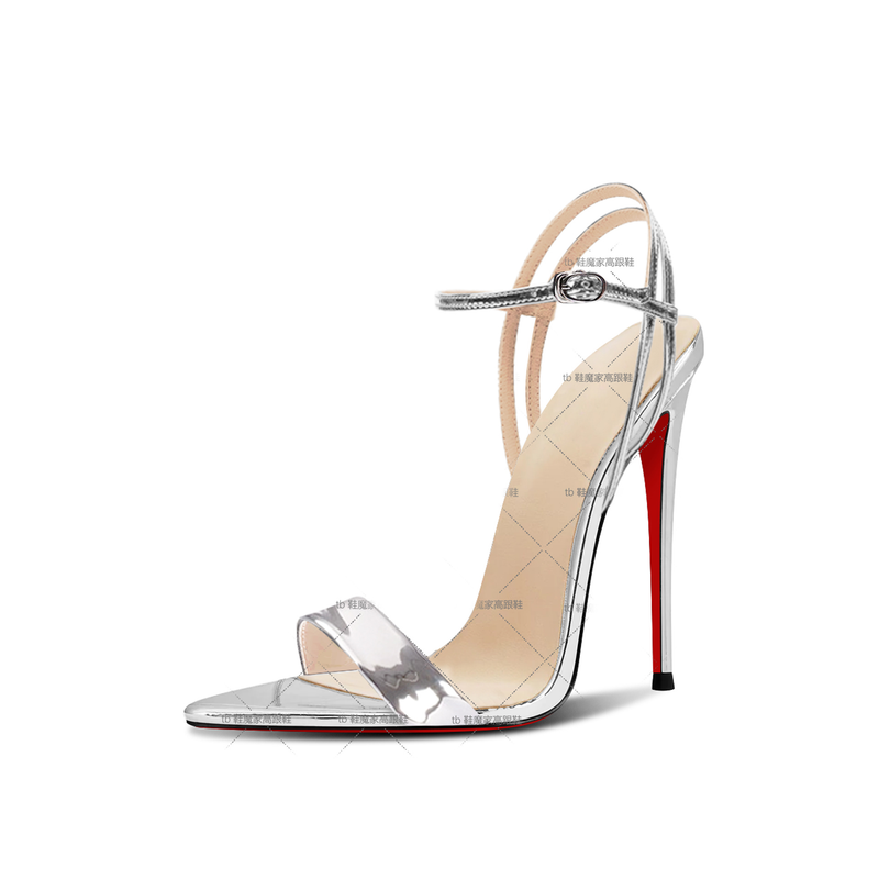 New 12cm pointed straight buckle high-heeled shoes with women's silver sexy lace up toe revealing fashion plus size sandals