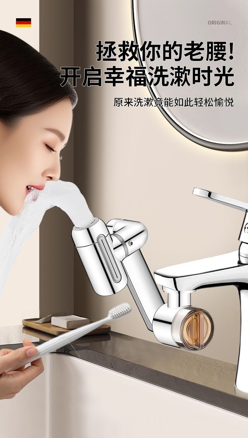 The 1440° rotatable design allows for versatile positioning, enhancing your kitchen and bathroom experience.