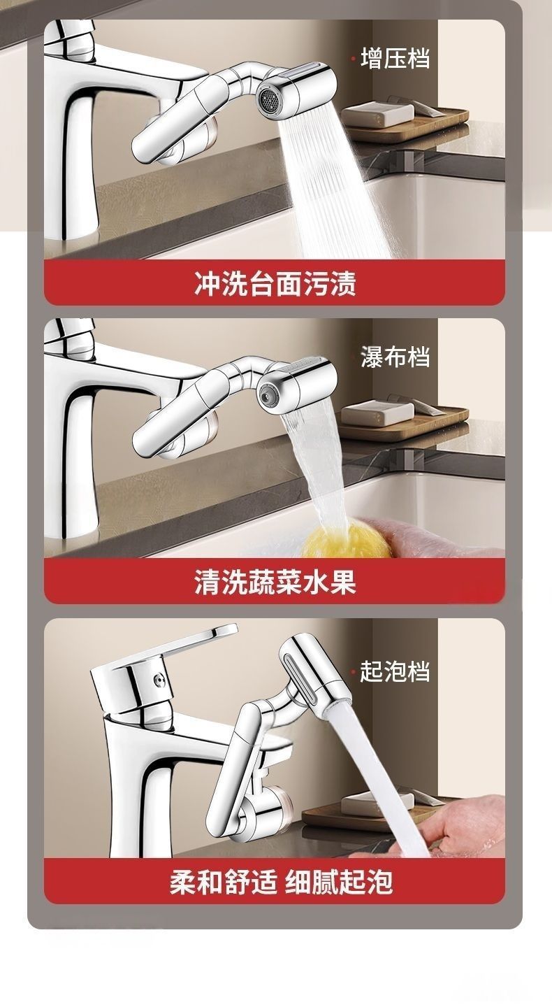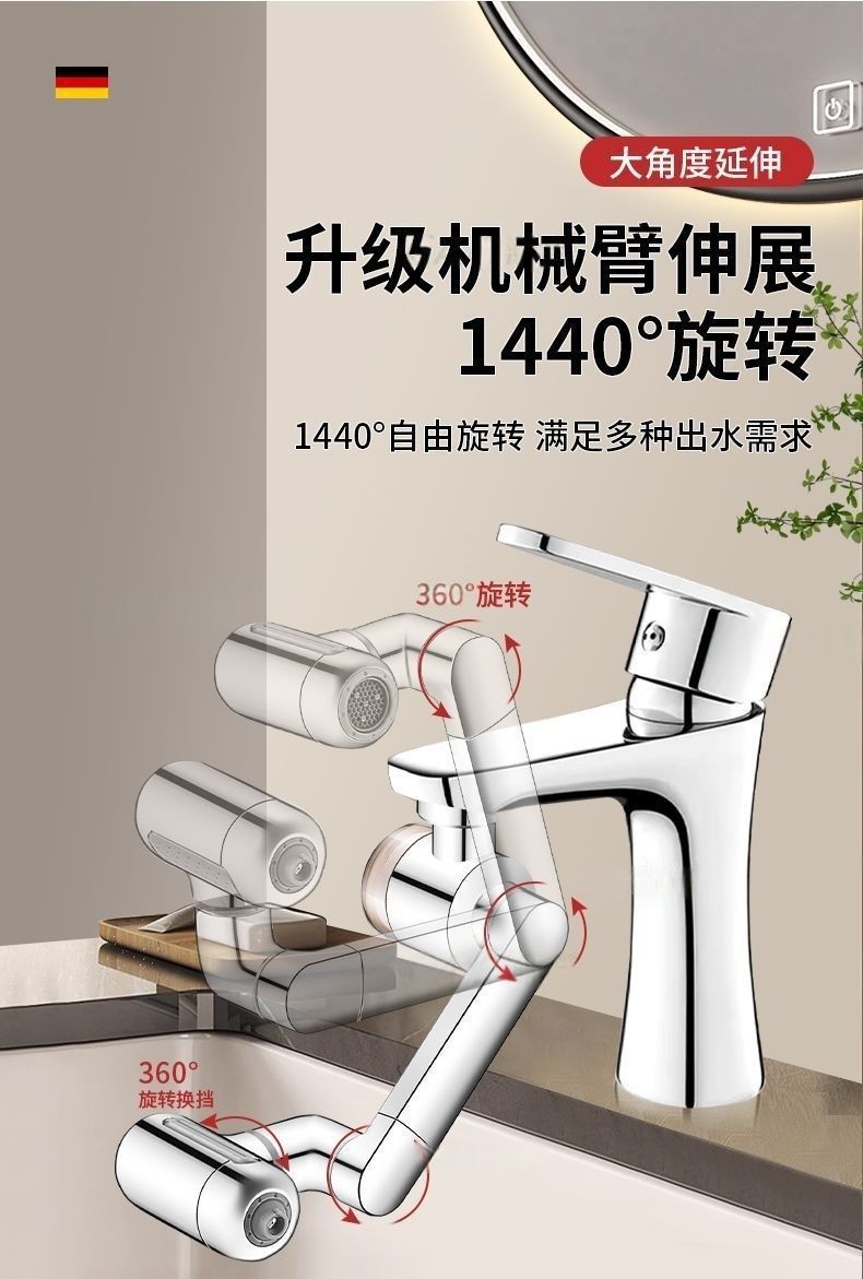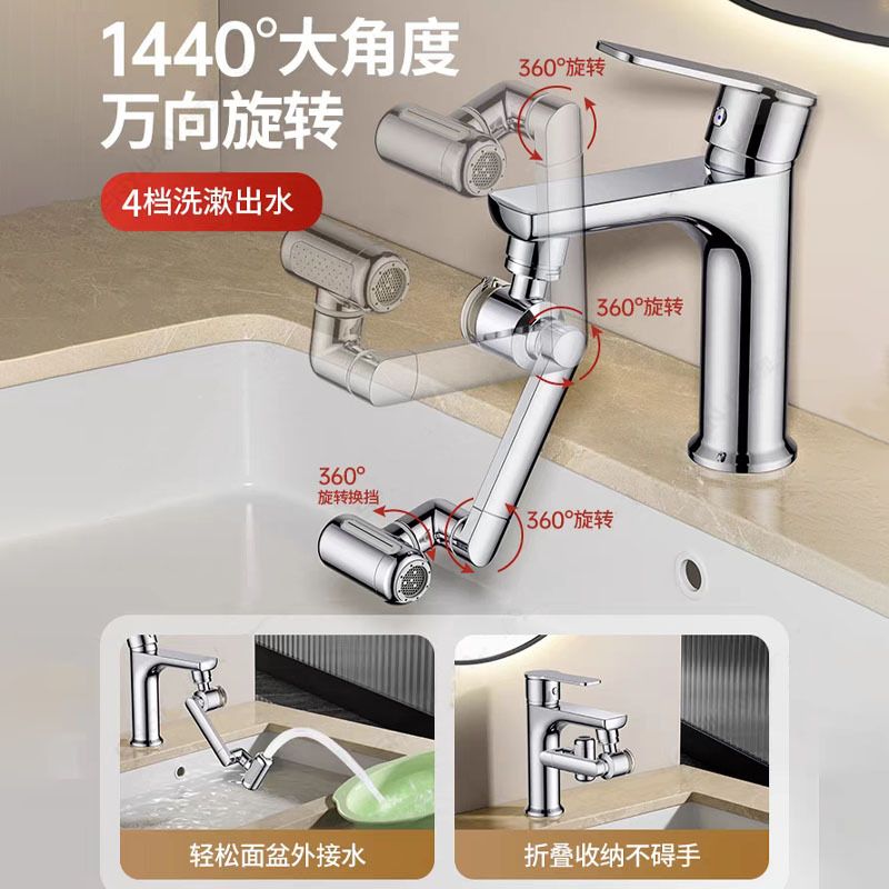 New 1440° Rotate Universal Kitchen Faucet Bathroom Tap Rotatable Faucet Sprayer 4 Modes Adjustable Faucet Extender Bathroom Set