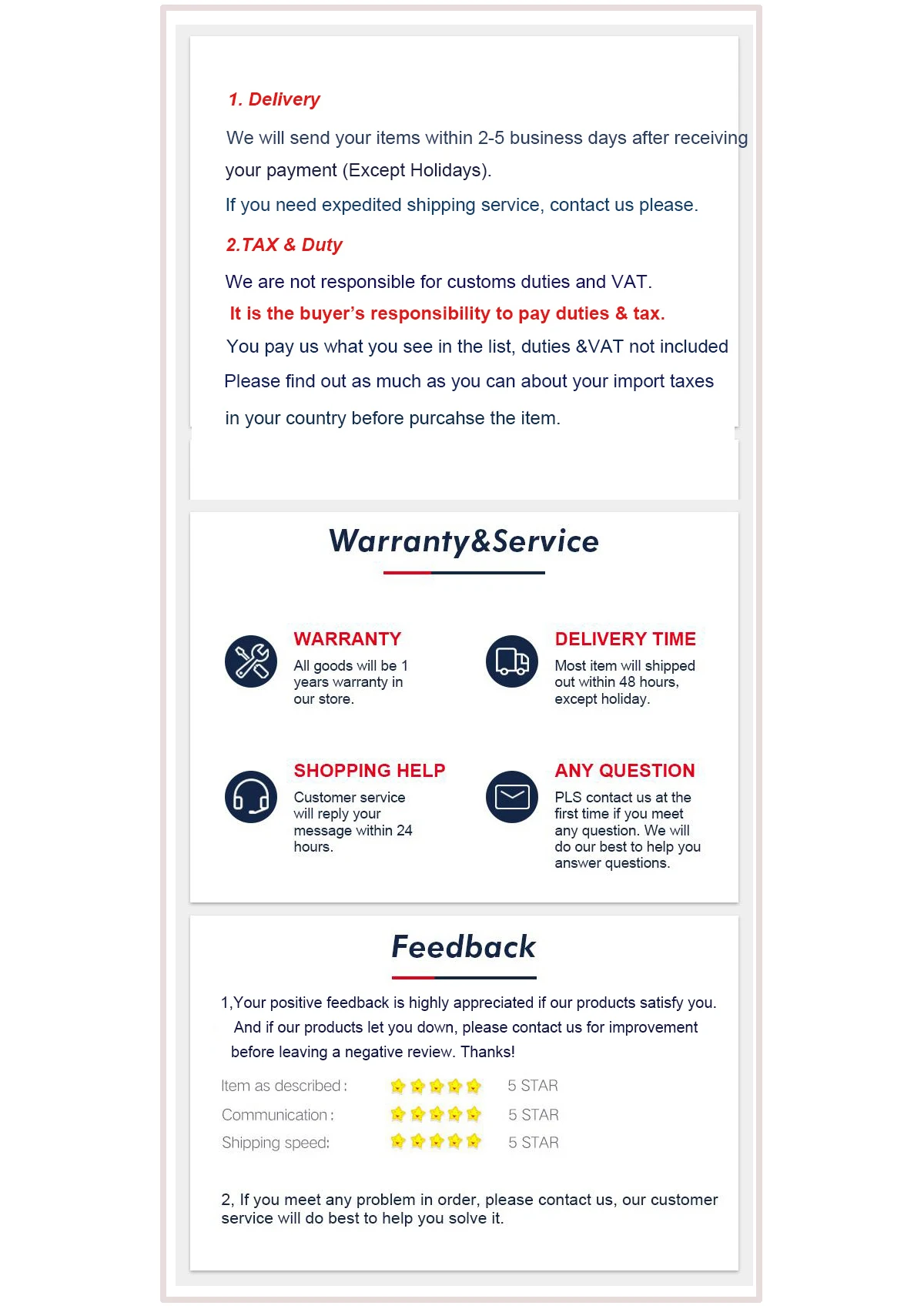 If you receive a damaged, defective, or incorrect item, please contact us within 7 days of delivery and provide clear photos of the product and packaging. We will arrange a replacement or full refund at no additional cost.
