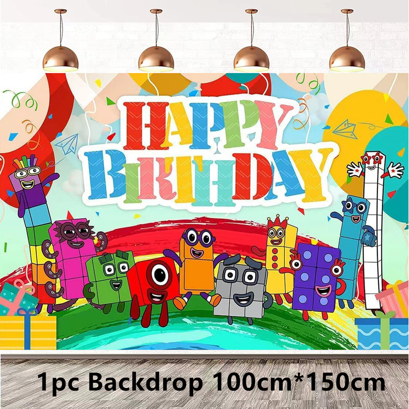 New 1Set Numberblocked Party Supplies TV Show Number Latex Balloons Toy Decor Happy Birthday Banner Bunting Cake Topper Balloon
