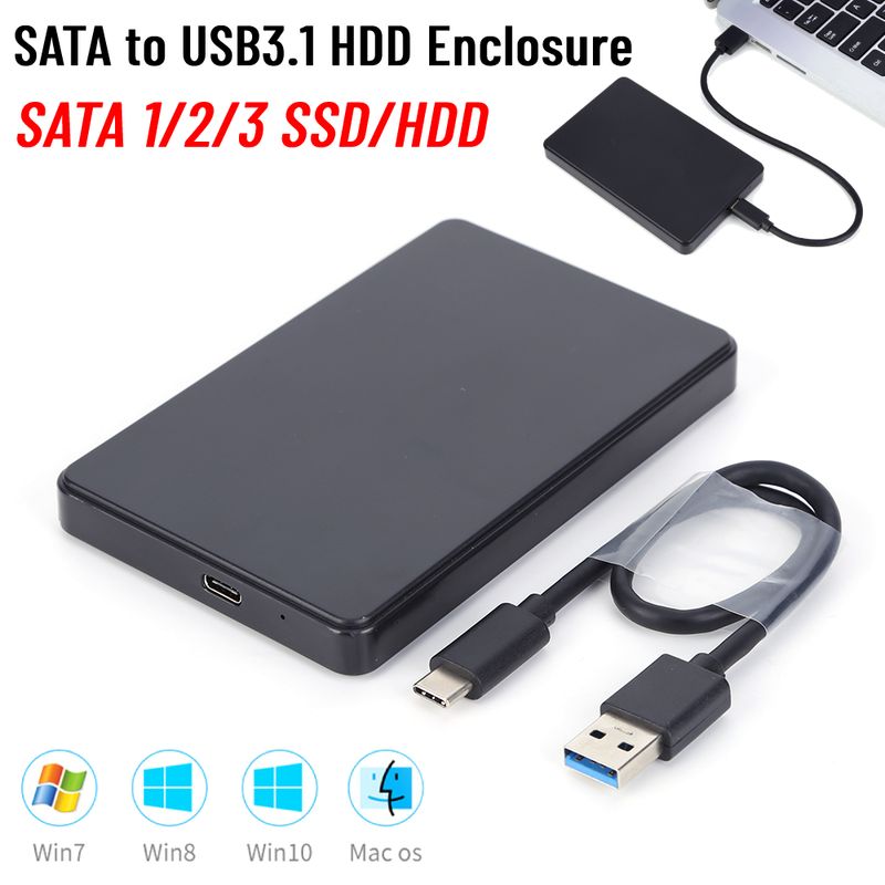 New 2.5" SATA to USB3.1 HDD Enclosure Mobile External Storage Harddisk Case USB3.1 SATA 1/2/3 SSD Case with USB C Cable