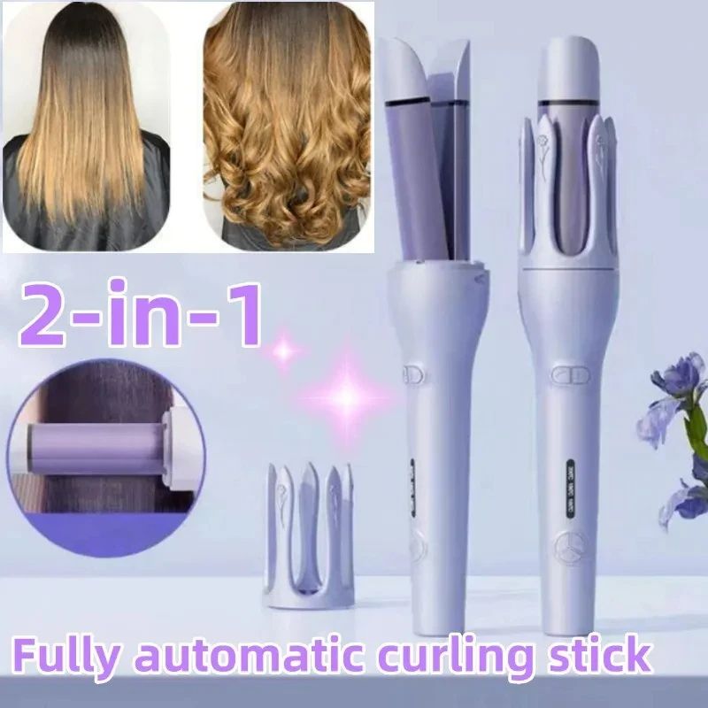 New 2 In 1 Automatic Hair Curler Straightener Negative Ion Electric Ceramic Fast Heating Rotating Magic Curler Purple AU
