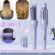 New 2 In 1 Automatic Hair Curler Straightener Negative Ion Electric Ceramic Fast Heating Rotating Magic Curler Purple EU