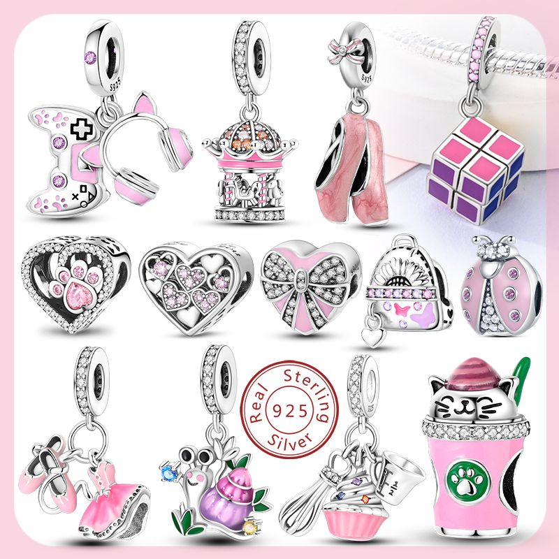 New 2025 925 Sterling Silver Charms Beads Love Heart Pink Original Charm Pendant Fit Charm Bracelets DIY Jewelry Birthday Gift