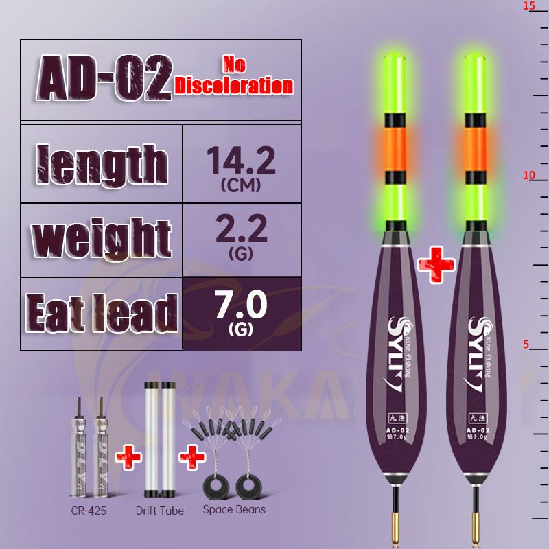 New 2Piece Short Footed Rock Fishing Float 5.2MM Night Light Float Sensing Color Changing Tail/Constant Brightness Tail Optional