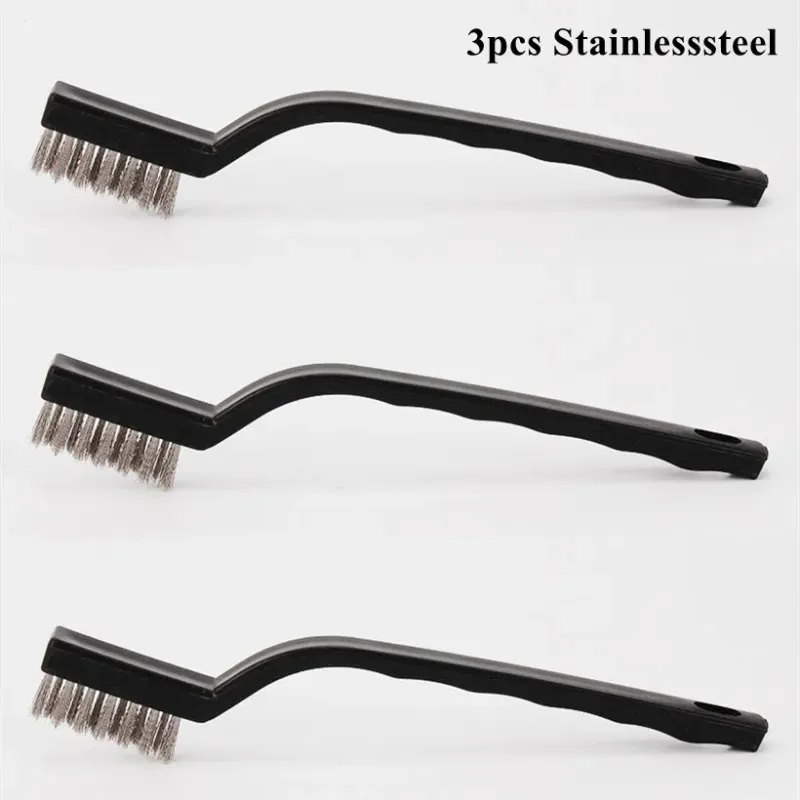 Description:Brand new and high qualityMaterial: stainless steel wire+plastic handleColor: black, as picture showssize:7 inch /170mmUsage: machinery, molds, and other parts manual cleaning and maintenancePackage included:3 x stainless steel wire brush (brush only)Note:Please allow 0.5-1cm errors due to manual measurementItem color displayed in photos may be showing slightly different on your computer monitor since monitors are not calibrated same