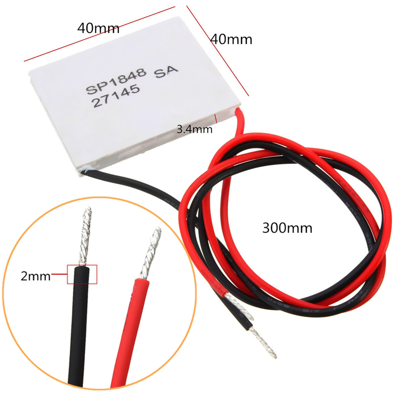 Red wire to positive, black wire to the negative, it generate electricity when the temperature difference happened