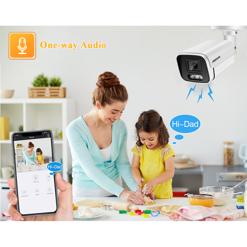 With a high resolution of 8megapixels (3840 x 2160), this 8MP HD IP surveillance camera is able to capture videos in 3840p HD quality. It is a huge advancement compared to 720p HD or 1080p Full HD. you never miss a single detail of your loved ones. which enables you to see all objects very clearly.