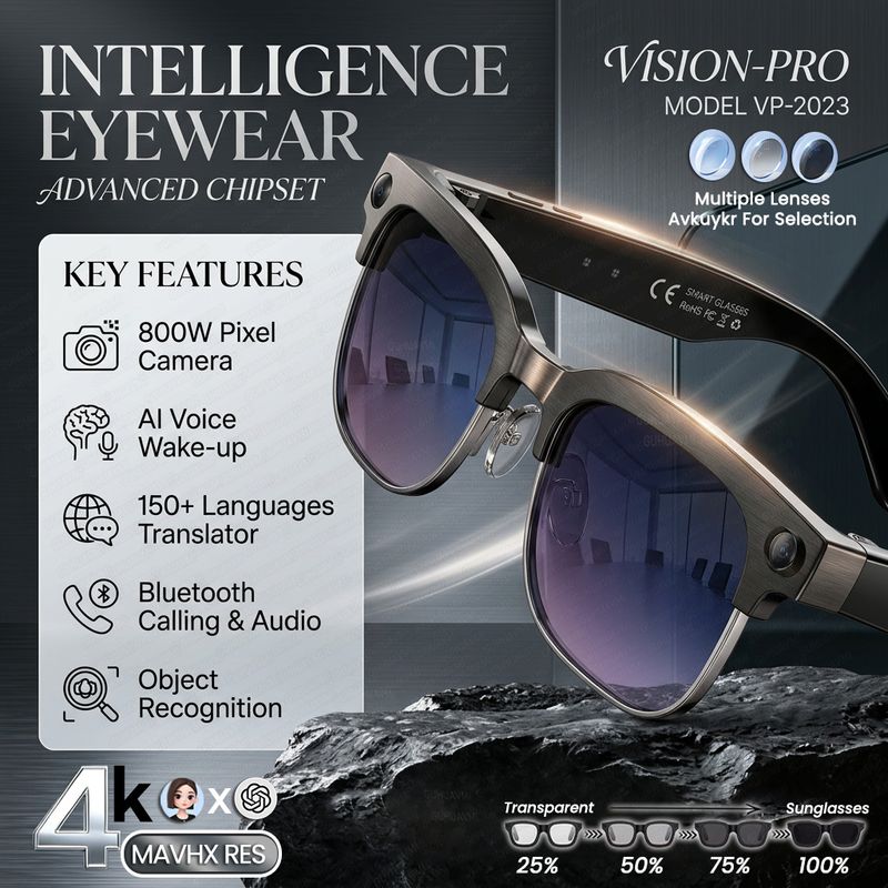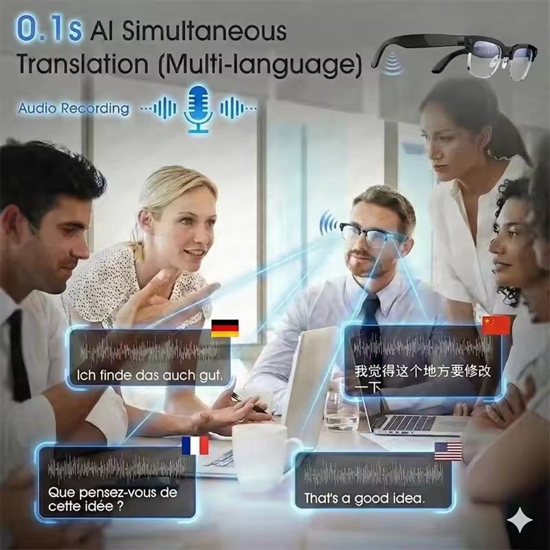 New 4k HD 800W Camera Smart Glasses Men 150+Language Translation 1080P shoot Video WIFI Transmission Music Player Call Glasses