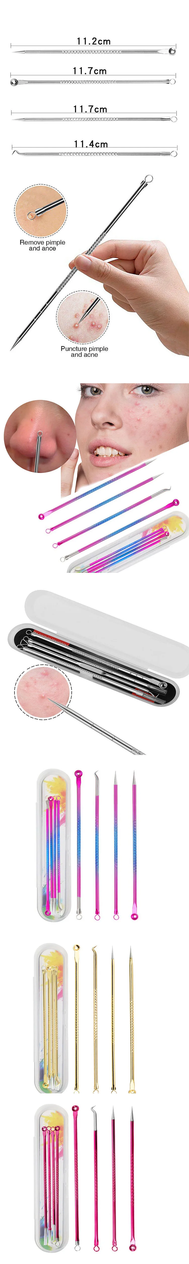 New 4PCS Face Cleaning Kit Pimple Removal Tool Blackheads Acne Remover Black Dots Remover Acne Tool Pimple Patches Acne LBHL17