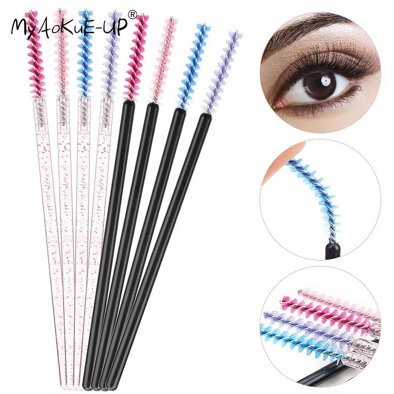 50 Pcs Makeup Eyelash Brushes Disposable Crystal Eyebrow brush Diamond Handle Mascara Wand Applicator Lashes Extension Tools
