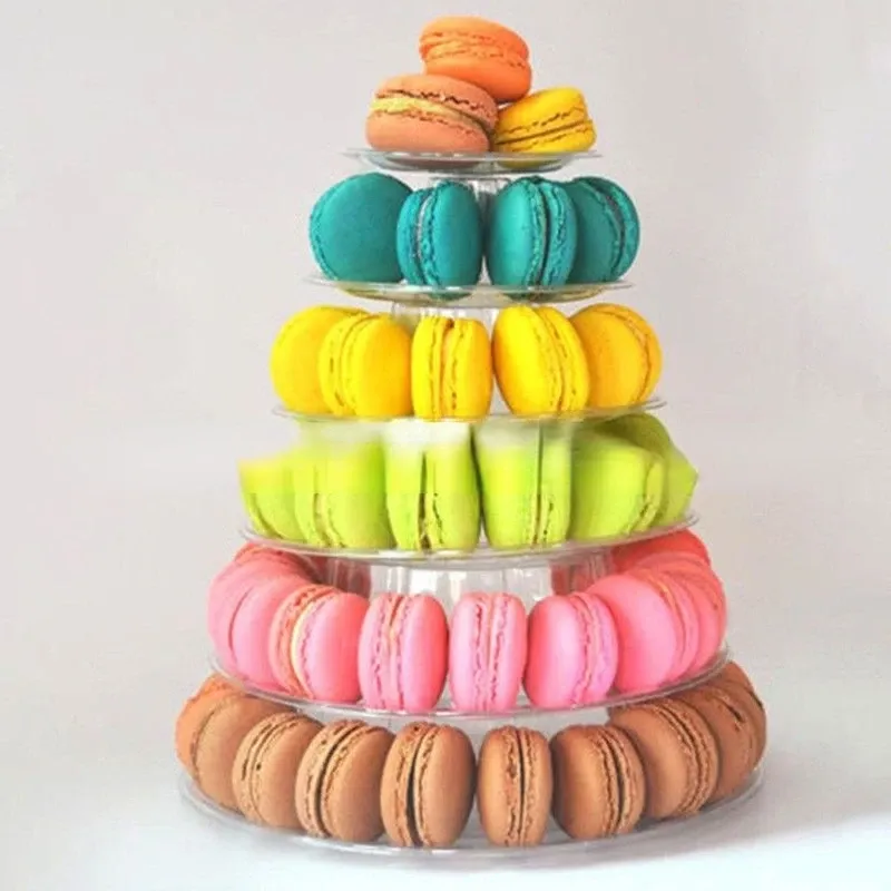 New 6-Tiers Macaron Display Stand Cupcake Tower Rack Cake Stands PVC Tray For Wedding Birthday Cake Decorating Tools Bakeware