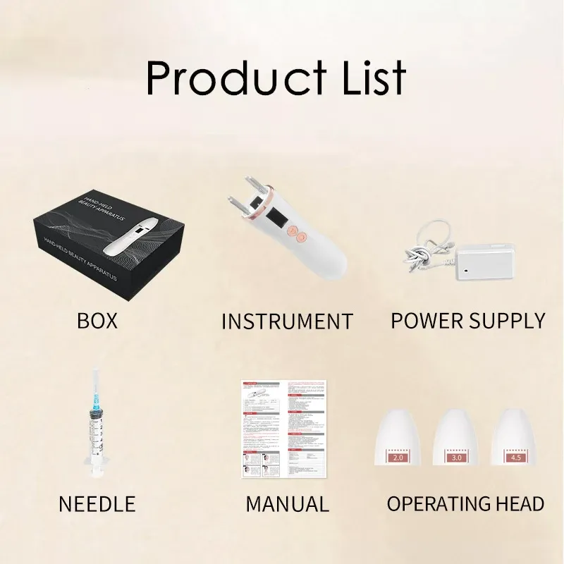 2) Upper Demis 2.0 mode,Deep dermis 3.0 mode, SMAS 4.5 mode and DUAL (3.0 &4.5) mode