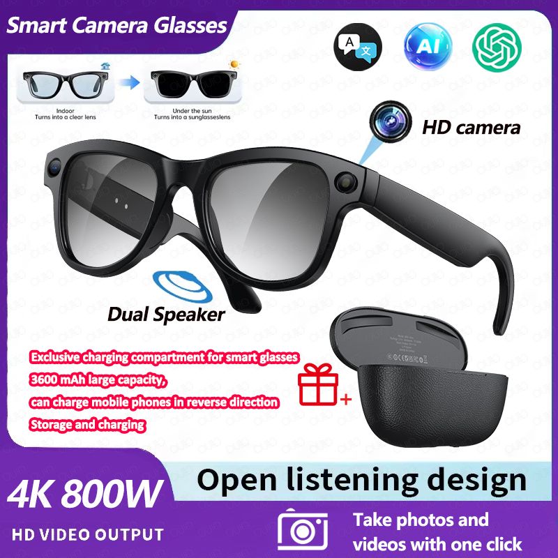 New 800W HD Camera Smart Glasses 3600 Large Capacity Battery Box 1080P Taking Pictures 32GB Memory AI voice Music Smart Glasses