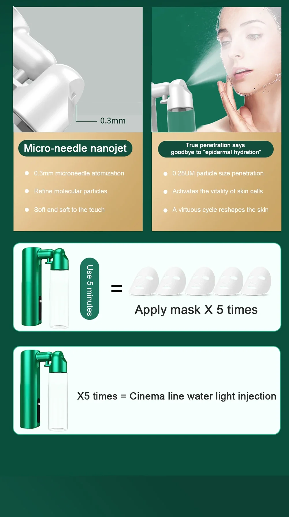 *RED LIGHT: 640nm-650nm red light penetrates into the dermis to promote the proliferation of collagen and elastin reduce wrinkles and restore youthful skin vitality.