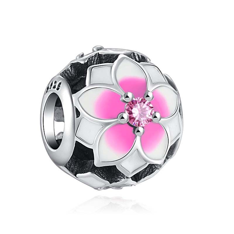 NEW 925 Silver European Pink Cake Bag Flower Heart Dress Pendant Bead Charms Fit Original Bracelet Necklace Women Diy Jewelry