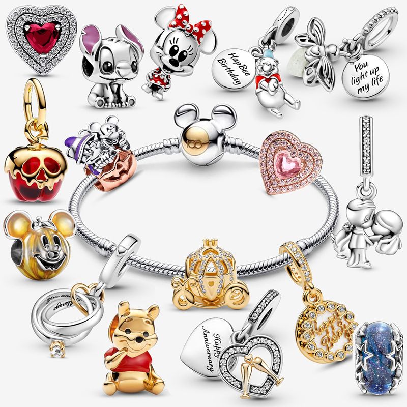 New 925 Silver Sparkling Heart shaped Star Moon Minnie Beads Mickey Disney Mother's Day Anniversary Pendant DIY Charm Jewelry