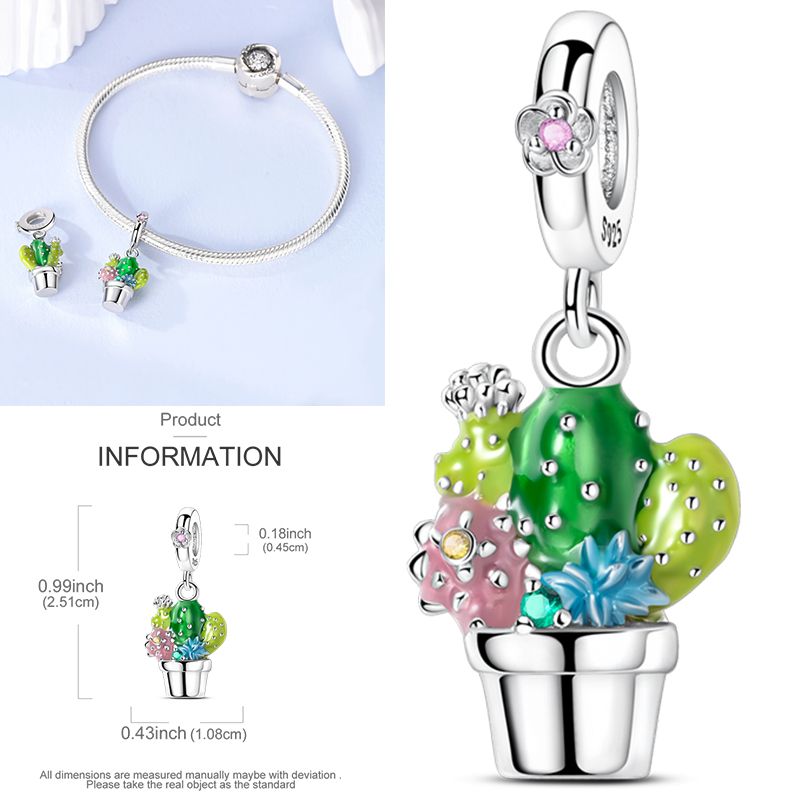 New 925 Sterling Silver Cactus Four Leaf Clover Charm Spring Green Series Bead Pendant For Original Beads Bracelet DIY Jewelry