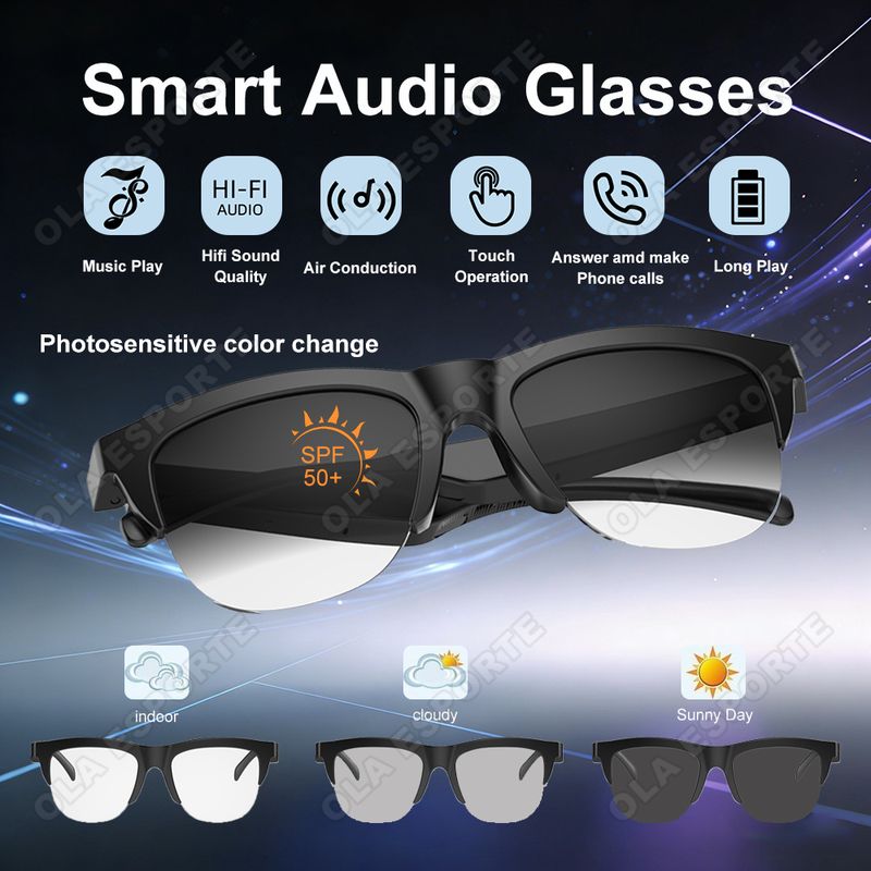 New AI Smart Glasses Photochromic Lens Bluetooth Earphones Voice Call Intelligent Eyeglass Music Headset Outdoors Changes Color