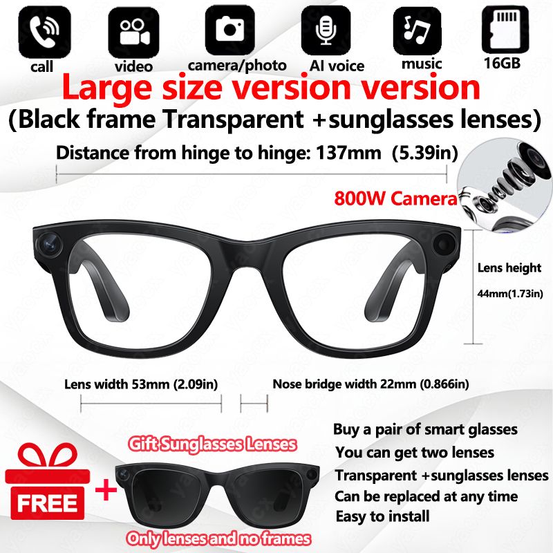 New Al Smart Glasses 800W HD Camera Anti Shake 1080P High-Definition Video Recording Touch Al Voice Wireless Call Smart Glasses