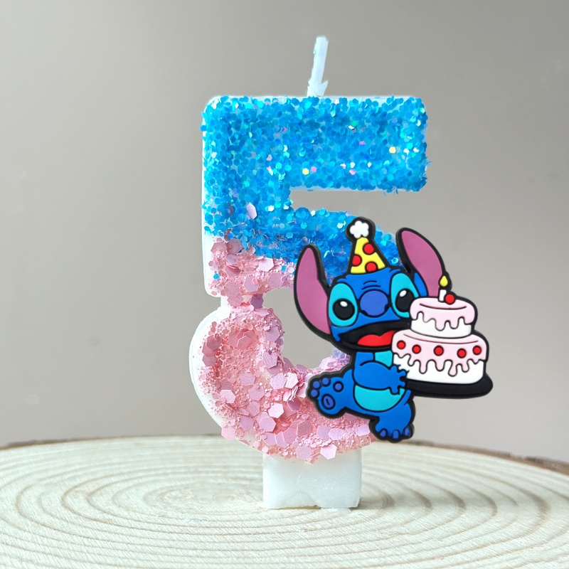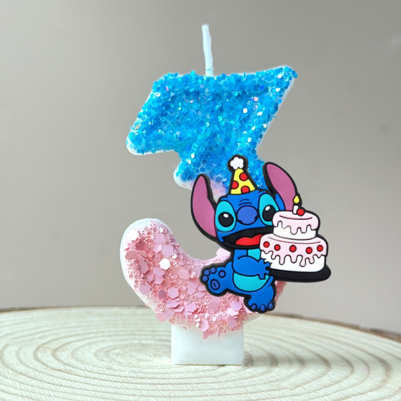 New Anime Lilo & Stitch 0-9 Number Candle Cute 3D Kawaii Stitch Cartoon Character Party Cake Plug-in Birthday Cake Decoration