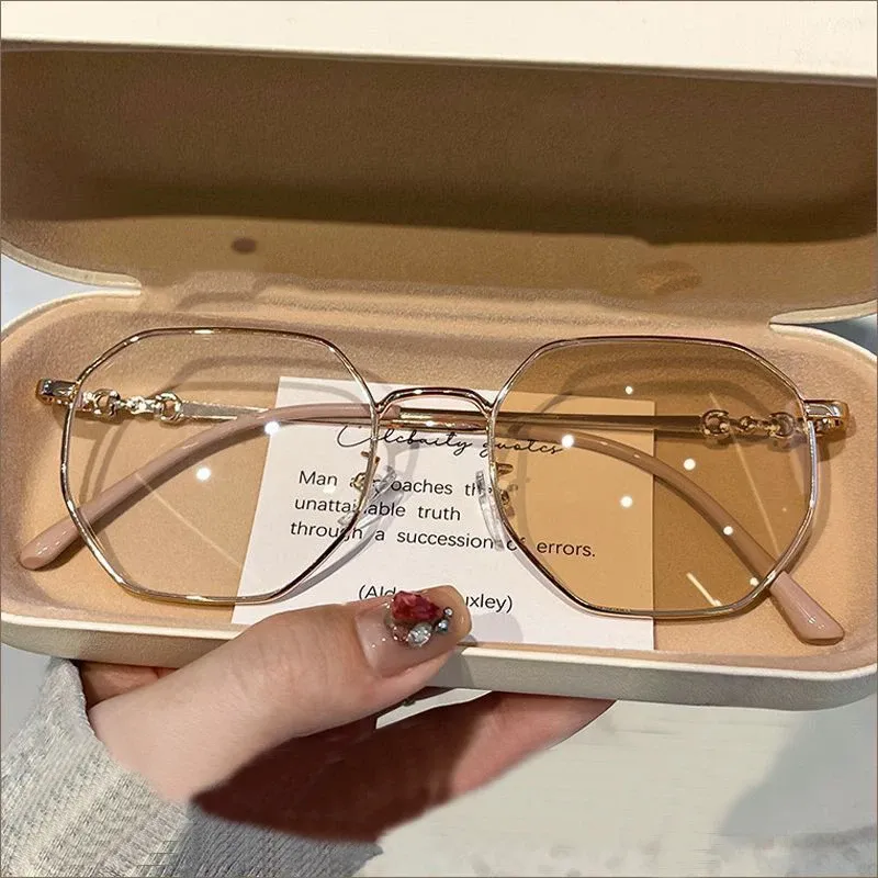New Anti-blue Photochromic Myopia Finished Glasses Polygon Anti-ultraviolet Near-sight Eyeglasses Ultralight Vintage Glasses