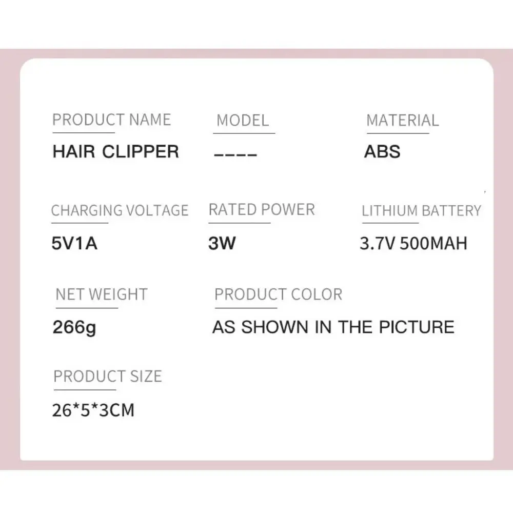 Color:Black,Blue,Purple,Beige,Pink Package Including:1*Electric Hair Clipper
