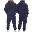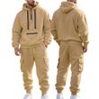New Autumn And Winter Men's Fleece Hooded Sweatshirt, Workwear, Long Pants Set, Sports and Leisure Multi Pocket 2-Piece Set