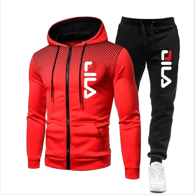 New autumn and winter men's long-sleeved pullover hoodie + pants 2-piece fashionable outdoor running men's sportswear set