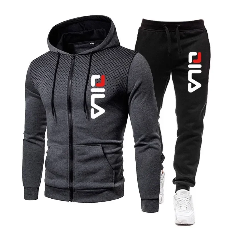 New autumn and winter men's long-sleeved pullover hoodie + pants 2-piece fashionable outdoor running men's sportswear set
