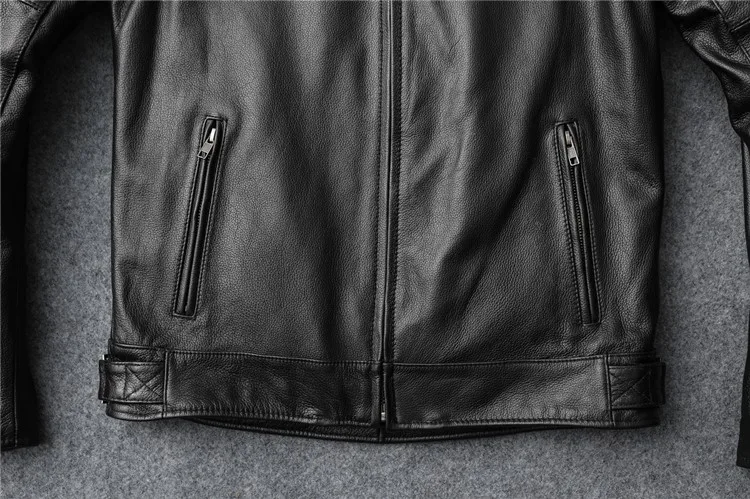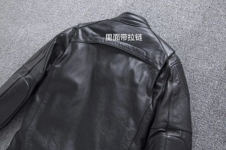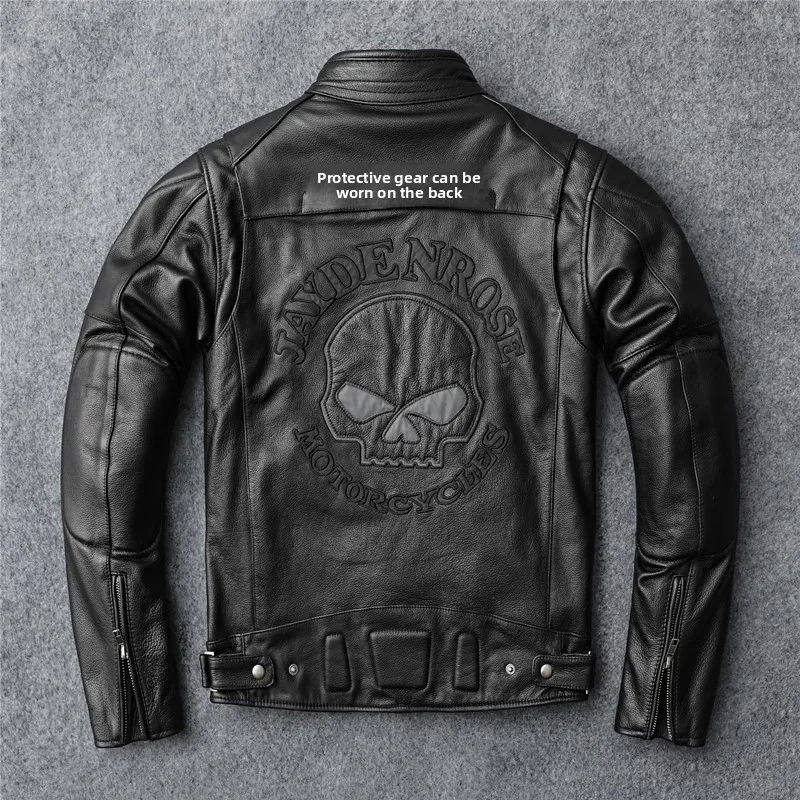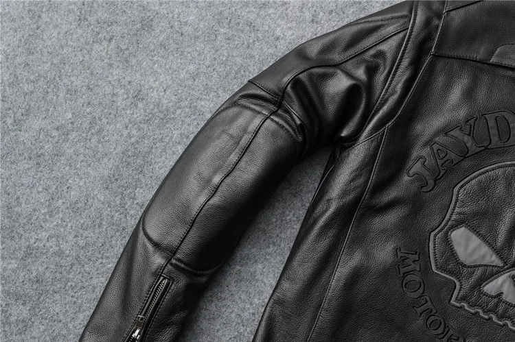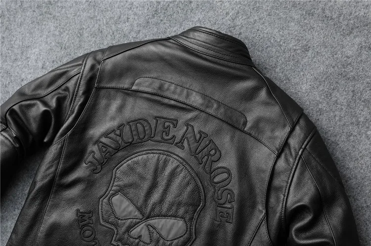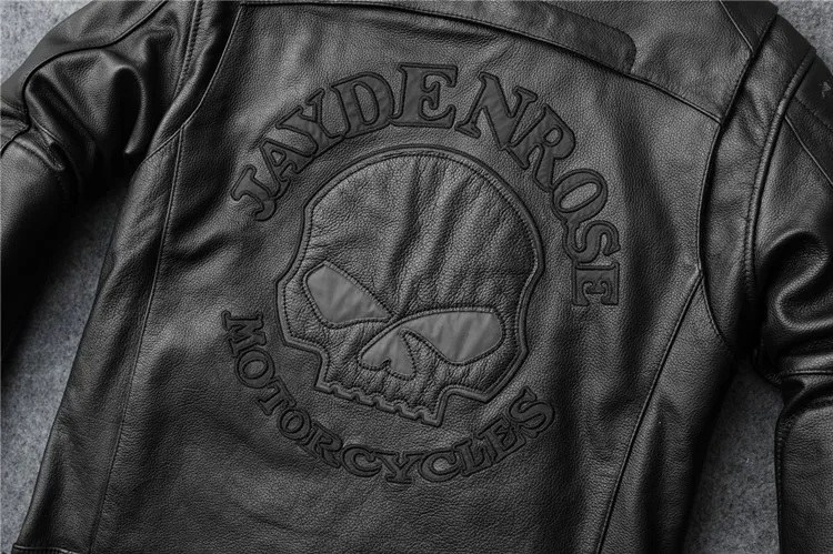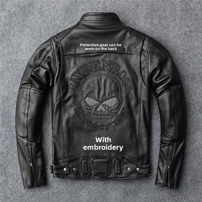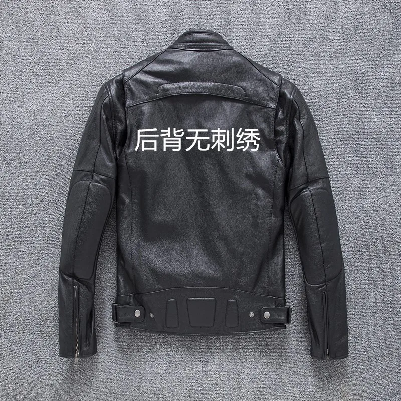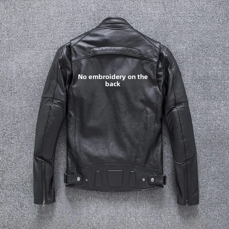 New autumn men's leather jacket embroidered and embroidered slim short cowhide leather jacket men's motorcycle jacket