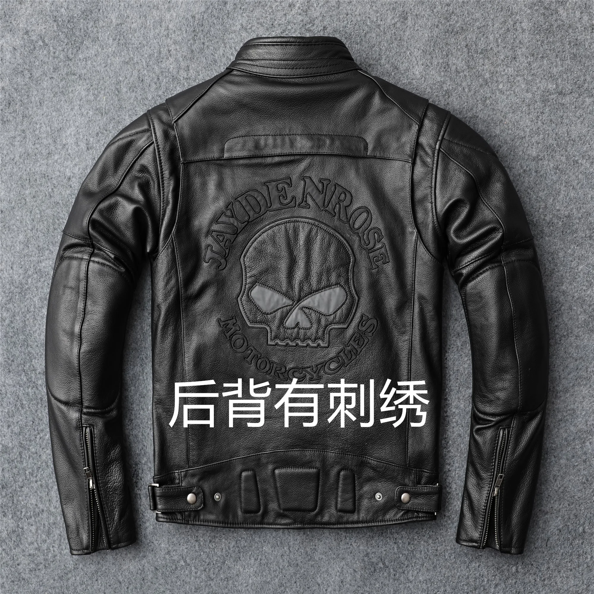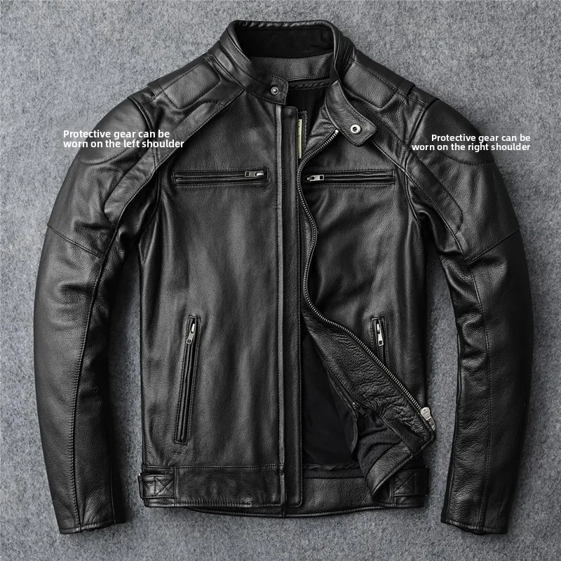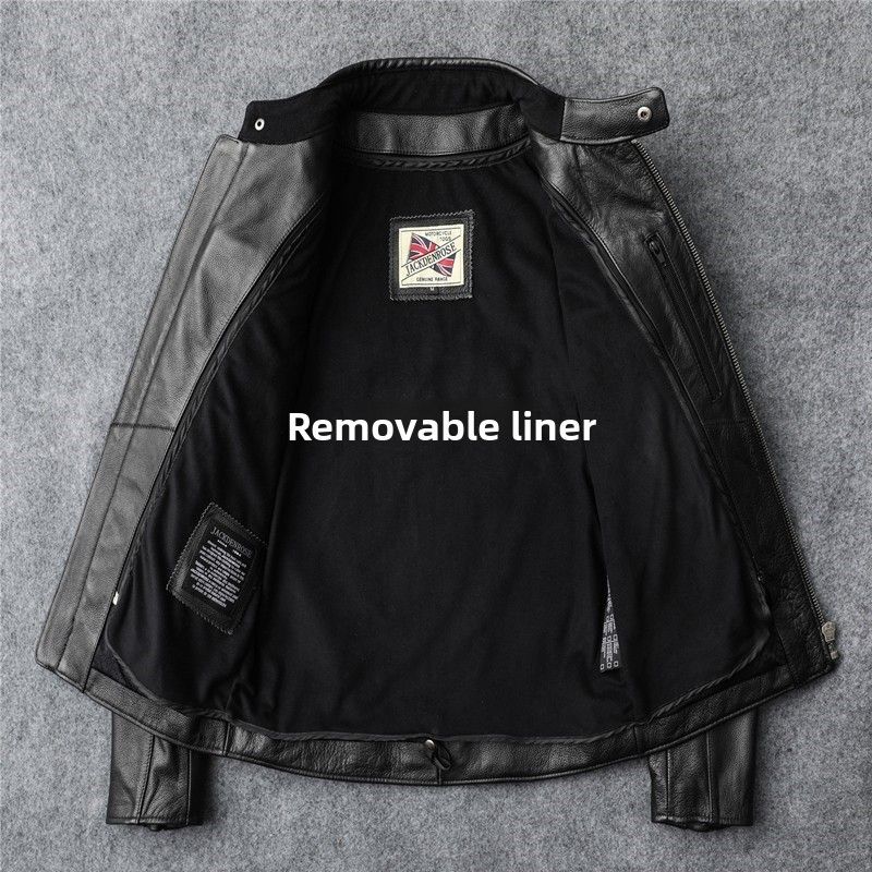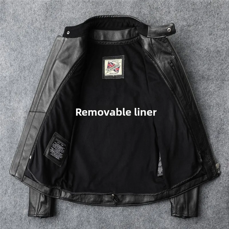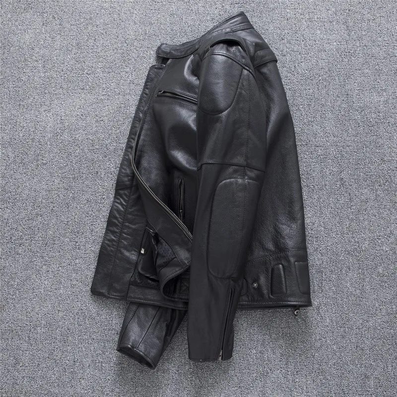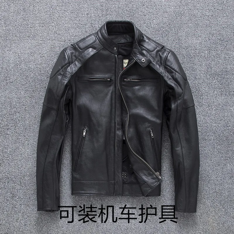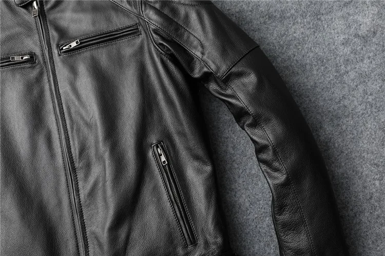 New autumn men's leather jacket embroidered and embroidered slim short cowhide leather jacket men's motorcycle jacket