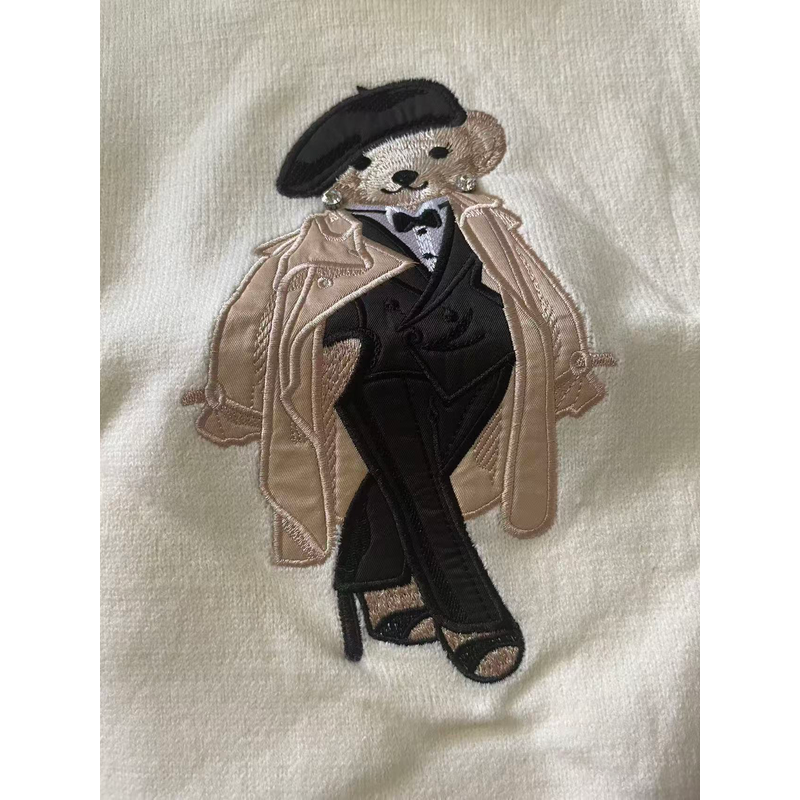 New Autumn Preppy Student Cashmere Sweater Women Cartoon Bear Embroidered O-neck Long Sleeve Pullover Top Casual Knitwear