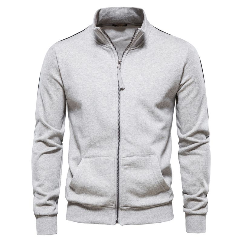 New autumn-winter men's versatile casual sports hoodie jacket: 50% cotton, stand collar, zipper, long sleeves, cardigan.