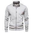 New style men's versatile casual sports sweatshirt jacket for autumn and winter, made of 50% cotton, with a stand collar, zipper, and long sleeves.