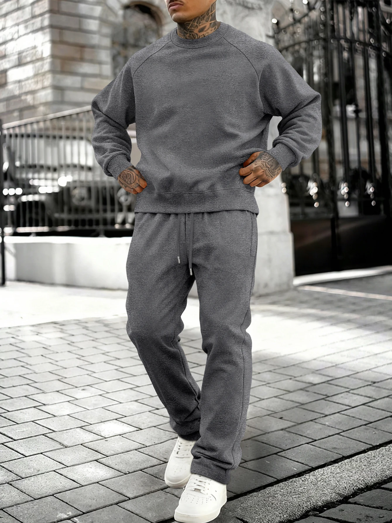 New Autumn Winter Solid Color Sportswear Casual Suit, Minimalist And Relaxed Style, Warm And Comfortable Men's Suit.